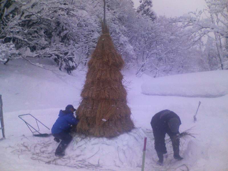 午前中は2時間かけて治兵衛さんの駐車場でさいの神の準備。