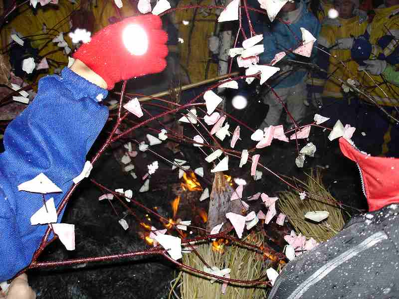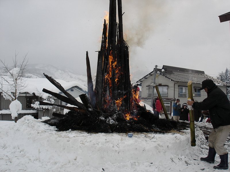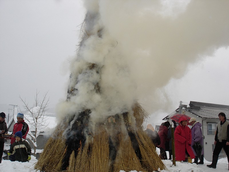1:00からは西村地区の方が集まり、伝統行事のさいの神。