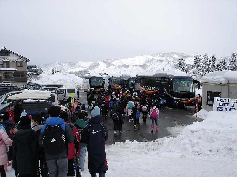 昼食後、須原スキー場の駐車場で閉校式。