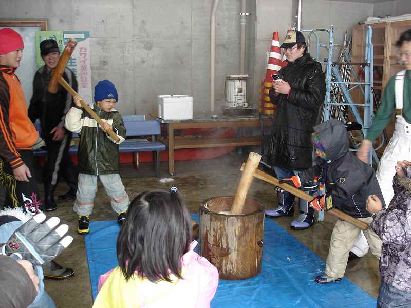 子供たちもペッタンペッタンついて、おいしいおもちができあがりました。