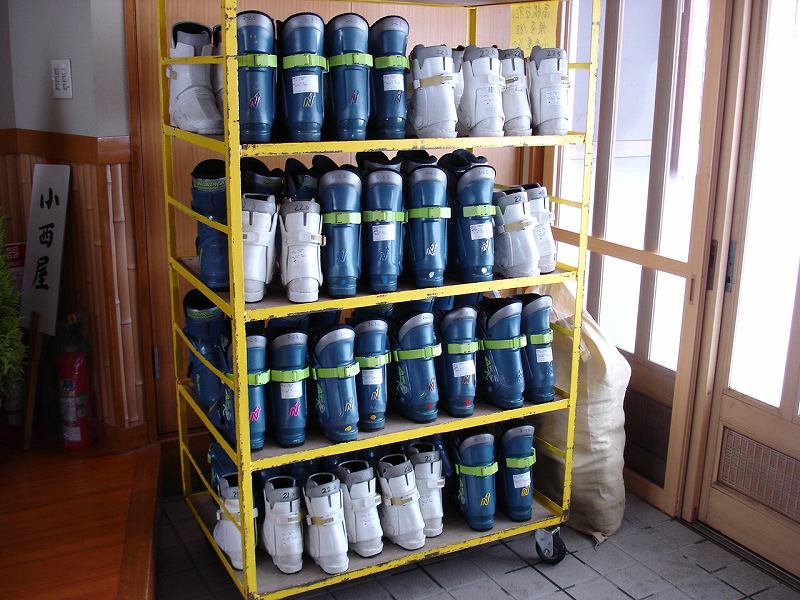 昼食後、スキー靴をはいてスキー場へ、