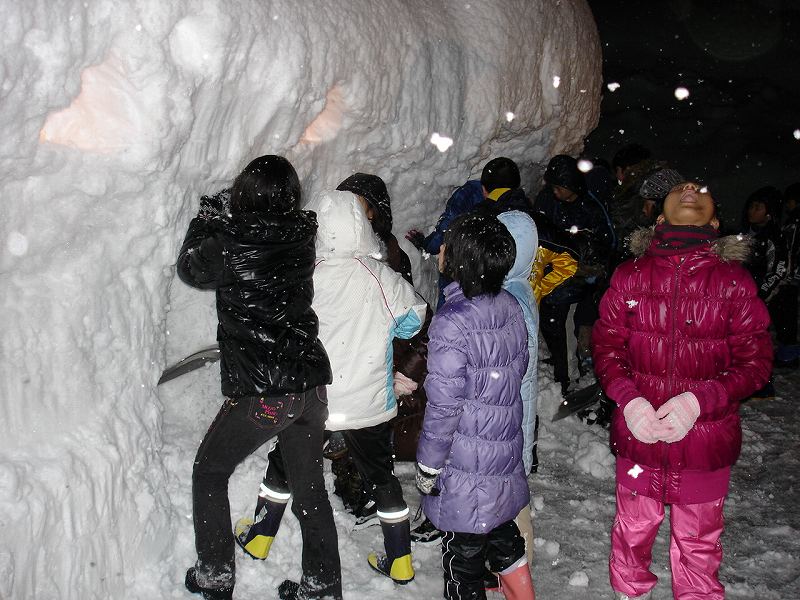 夕食後は各宿にてかまくら体験。