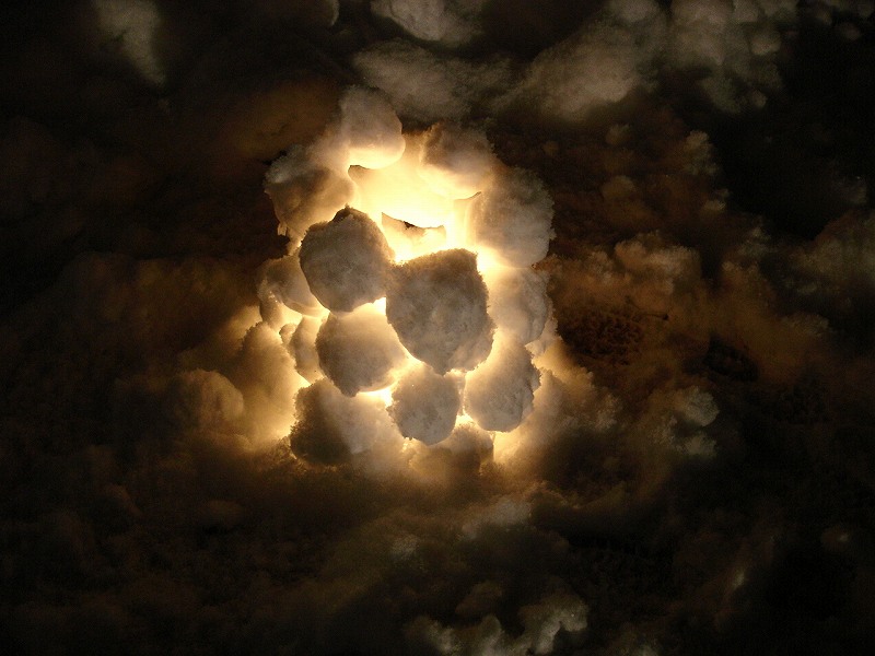雪玉で作った雪灯篭。