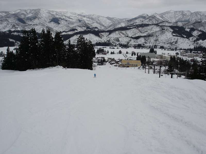 また湿った雪で硬いような柔らかいようなゲレンデで若干滑りづらい。