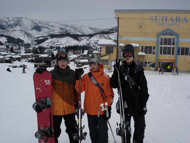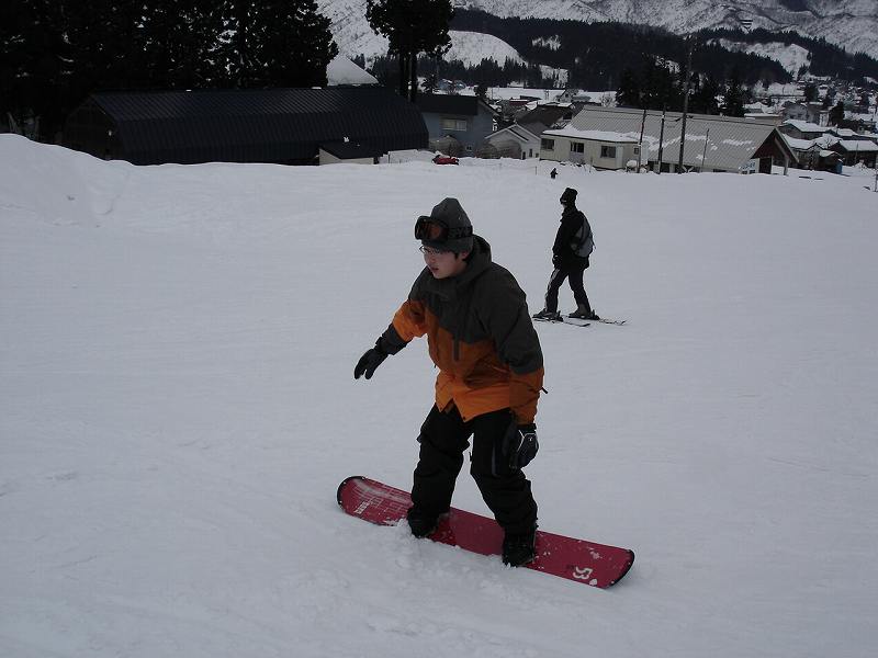 聡希君だけ初めてのスノーボード、友達はスキー。