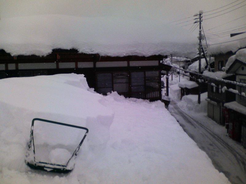 下屋根には90cm程の積雪になり、4回目の雪下ろし・・・・。