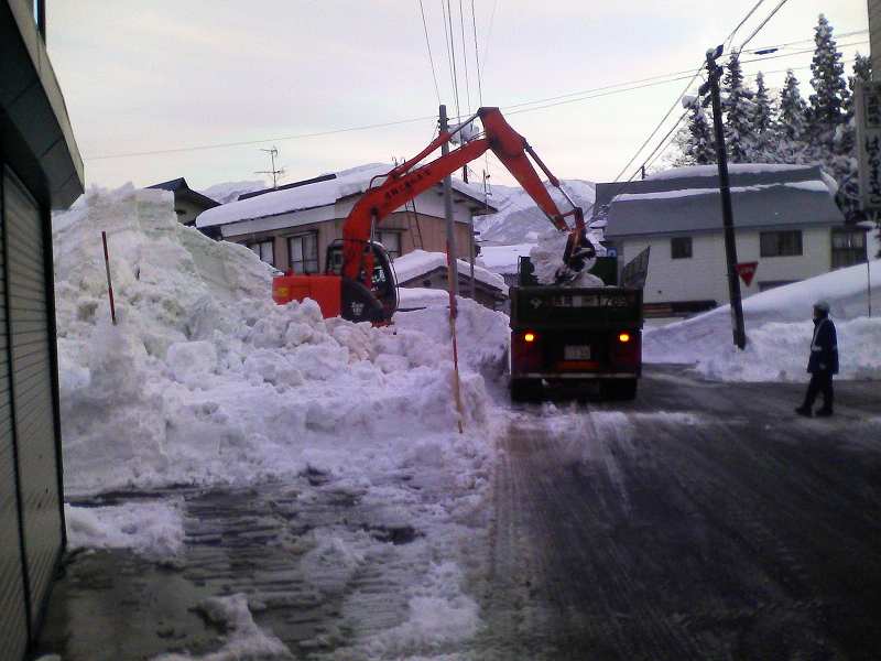 落とした雪はジョブサンでダンプに積んで排雪へ・・・・。