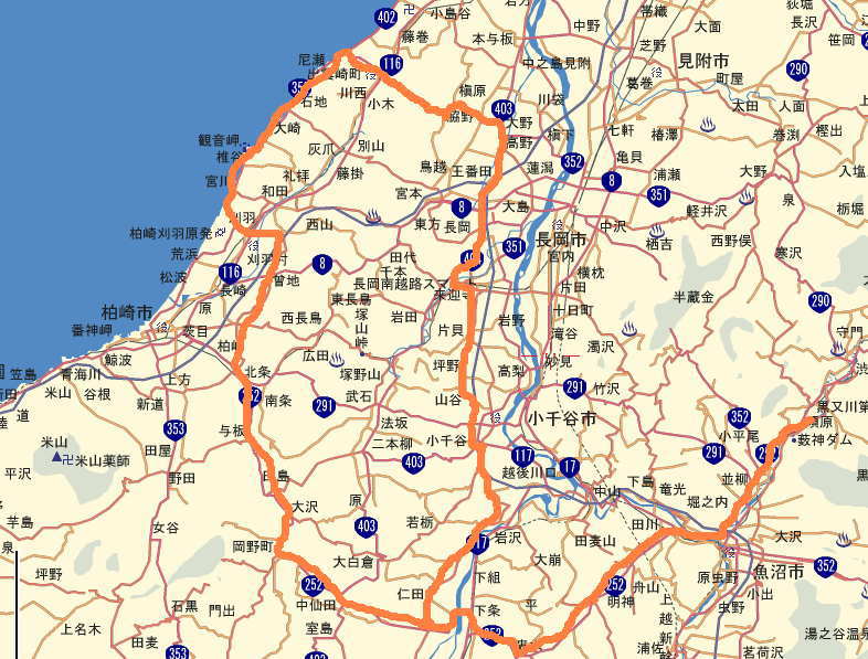 帰りは出雲崎→長岡市→小千谷市→十日町市→魚沼市・・・・。