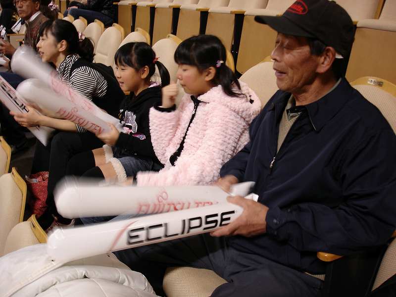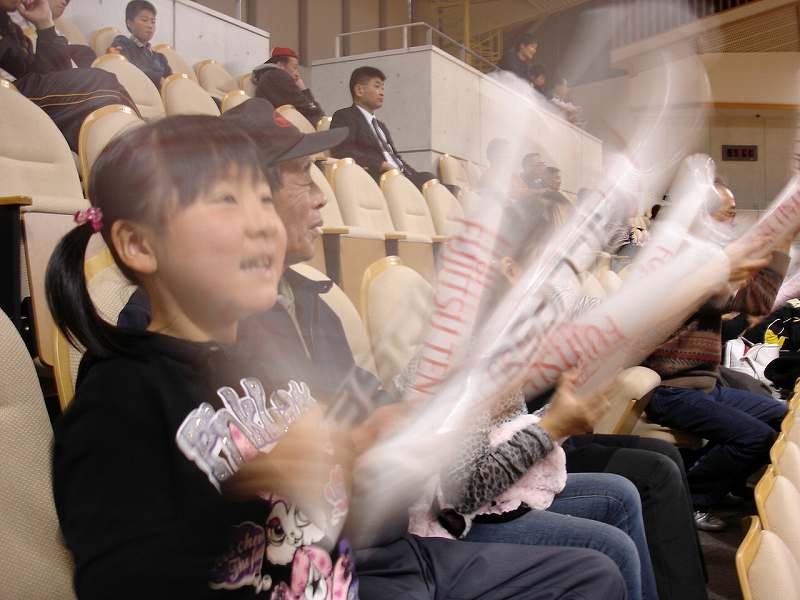 富士通テンの文字が入った応援グッツを頂き、2階ギャラリーにて応援。