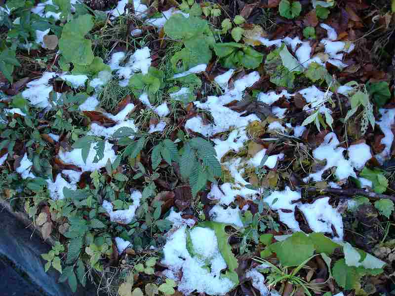 道路には雪がないものの、道路沿いの脇には雪がありました。