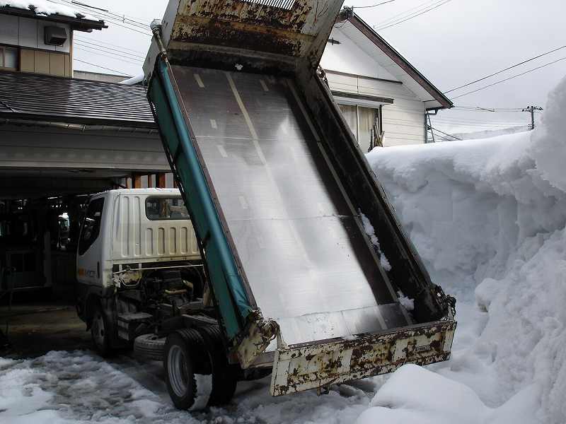 どうしても氷点下になると荷台が凍ってしまい、のっけた雪が荷台にくっつき滑り落ちず、