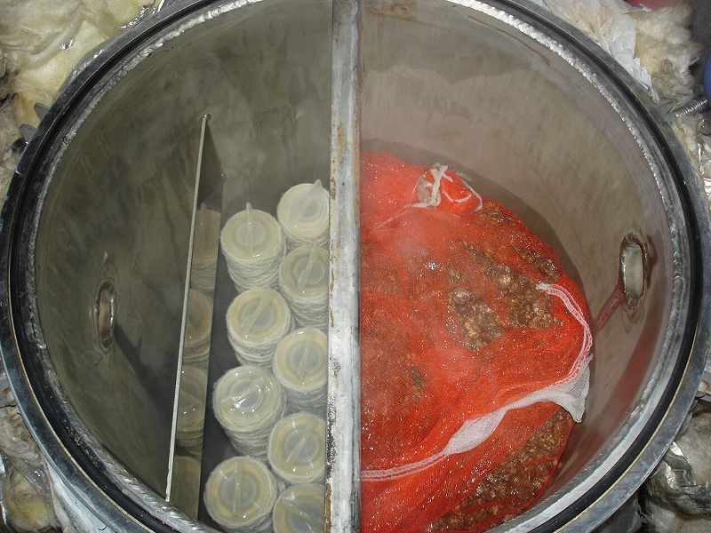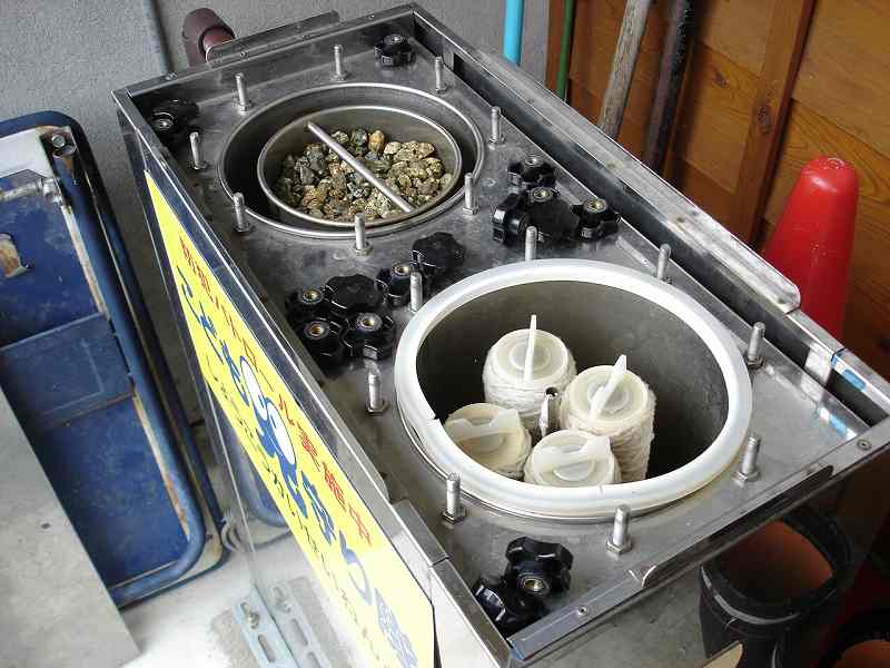 糸巻きフィルターとろ過する石。