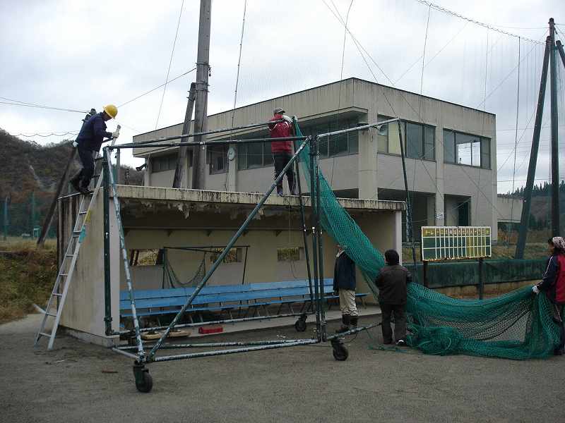 野球場にはバッティングゲージがあり、これもばらして管理等の下に。