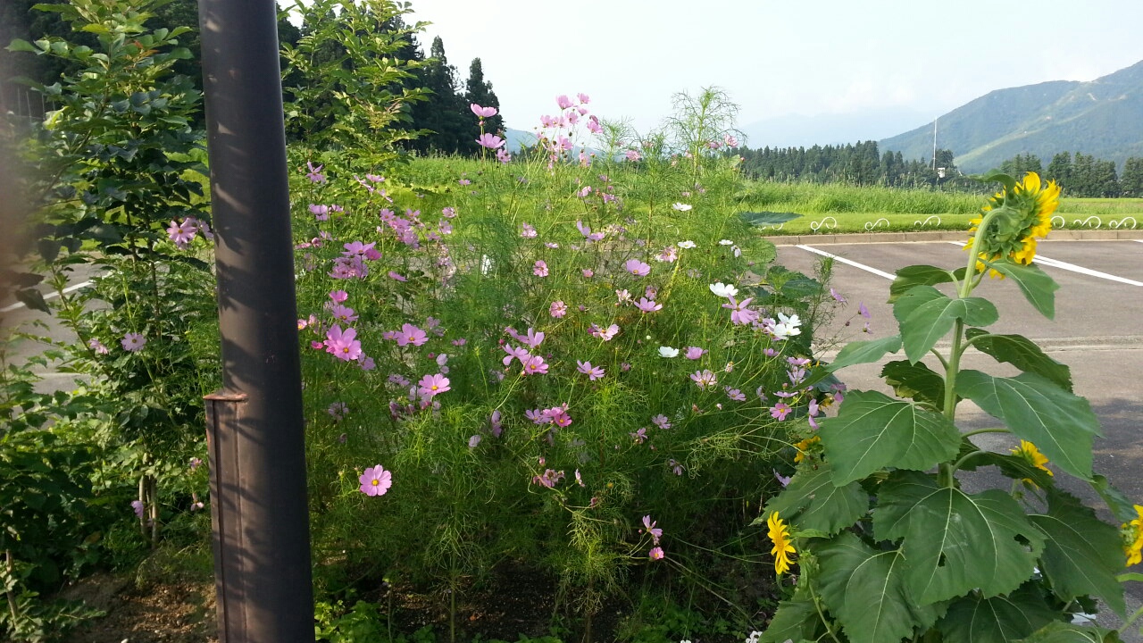 駐車場にはコスモスが咲いていました。