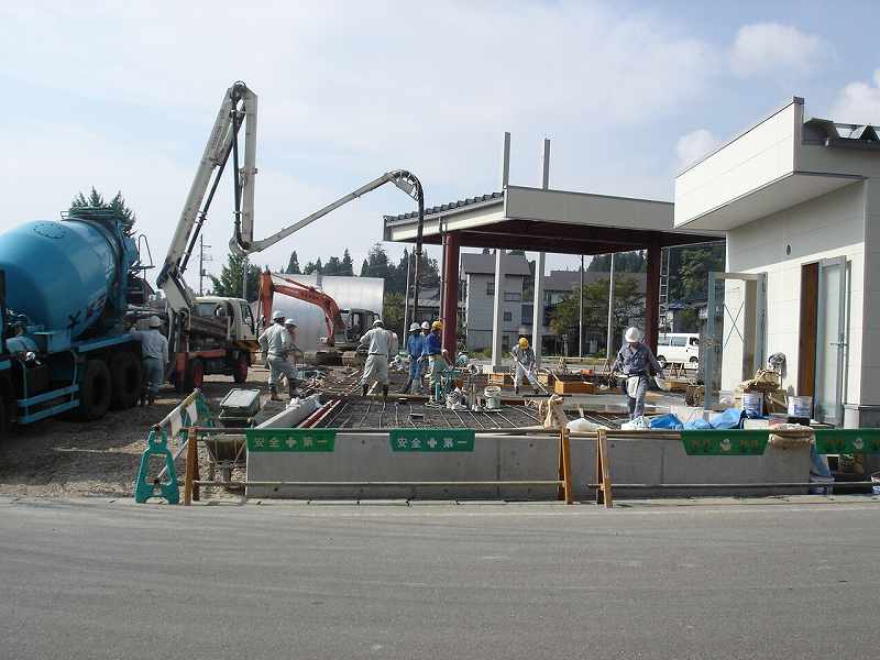 越後須原駅前のJA守門セルフスタンド工事がだいぶ進んできました。