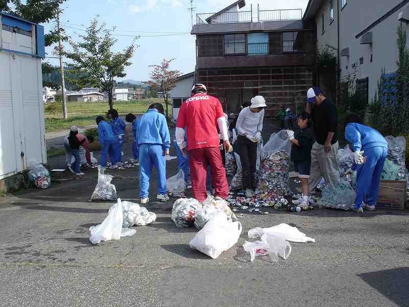 アルミ缶は凄い量で、後半は全員で潰しています。