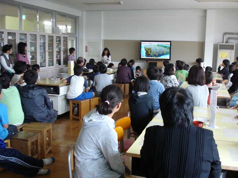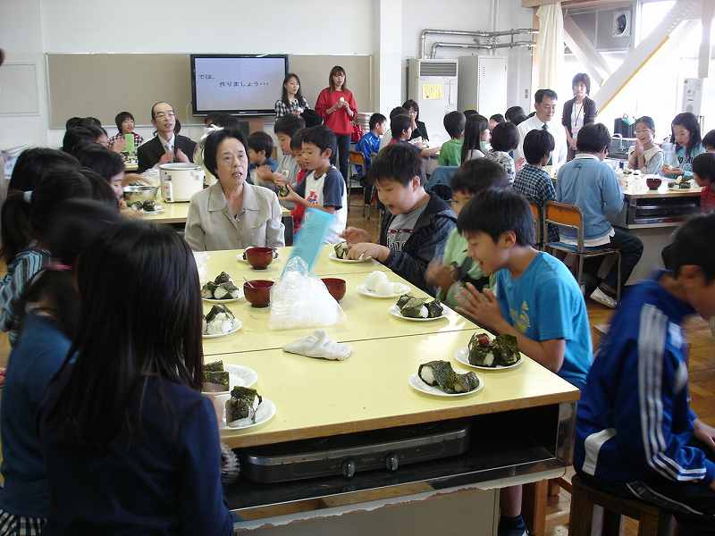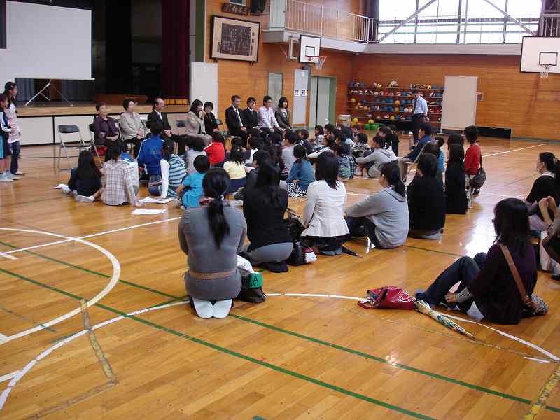マイクロバスで7軒の旅館民宿の方と武蔵野市立第一小学校へ