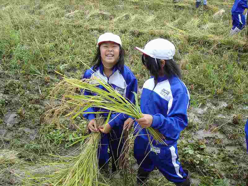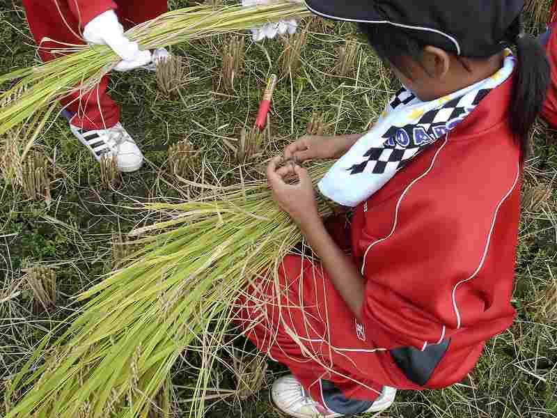 須原小5年生は10日程前に稲刈りをしたばかりで、