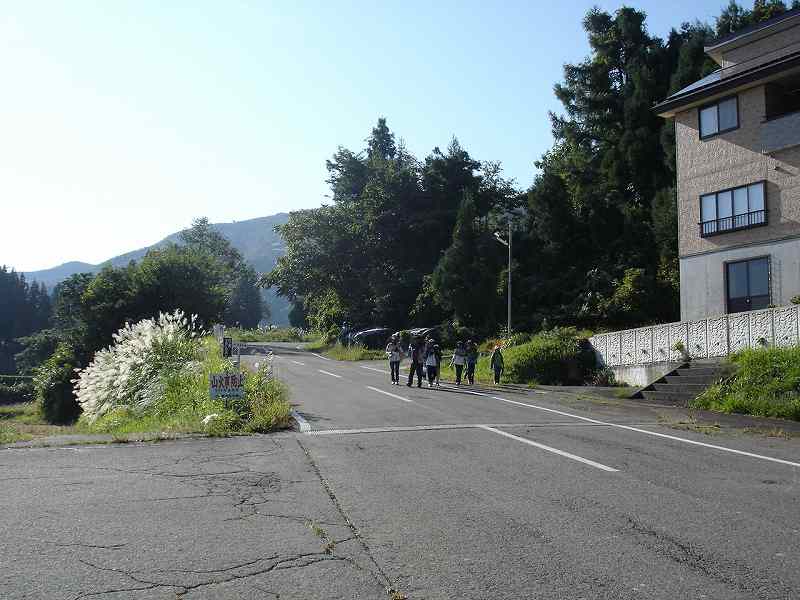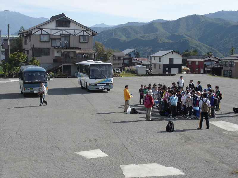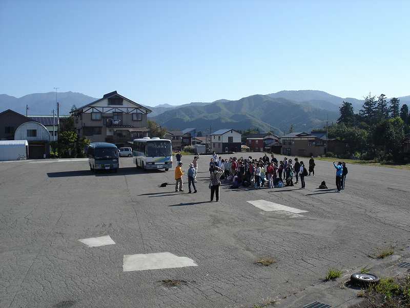目黒邸の駐車場に集合し、須原小学校に向かいます。