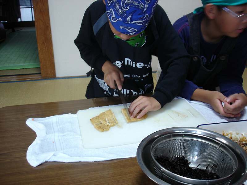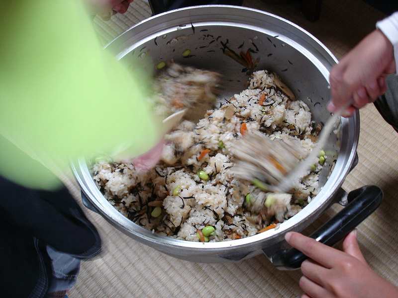 他の宿では五目御飯作りで具を混ぜています。