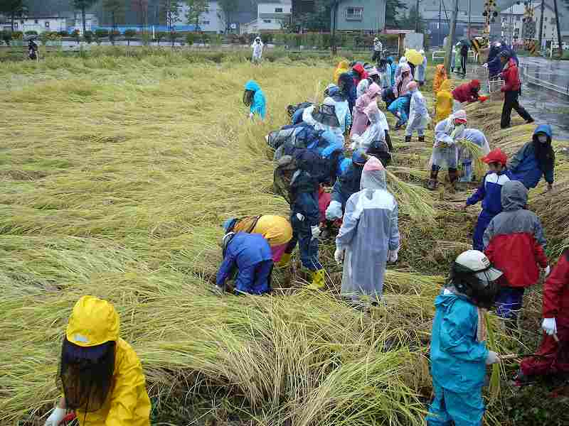 初日午後に予定していた稲刈りを本日行いました。