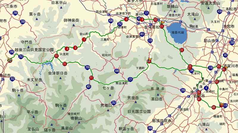 魚沼市-六十里峠R252-会津坂下IC-磐梯河東IC-猪苗代湖-
