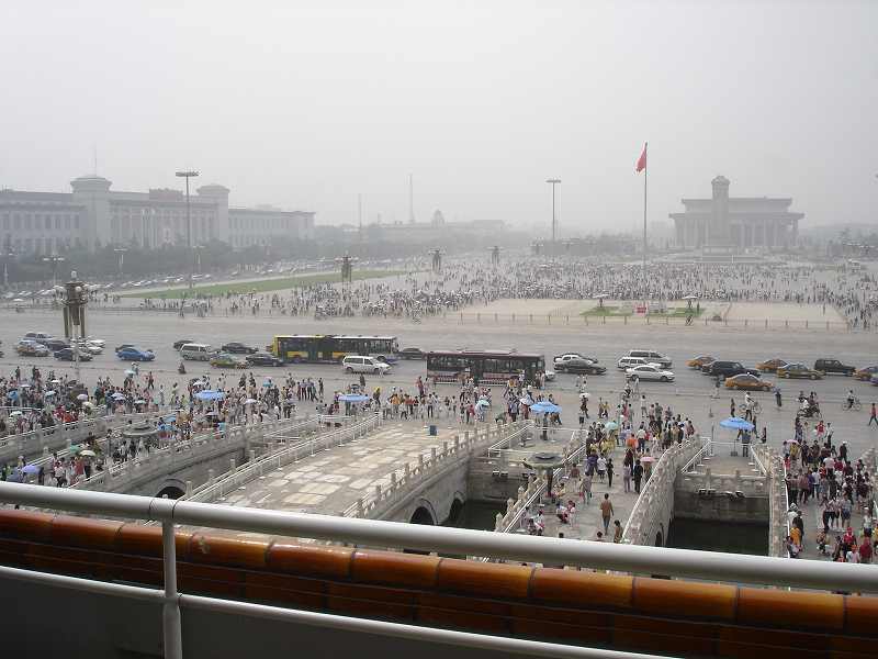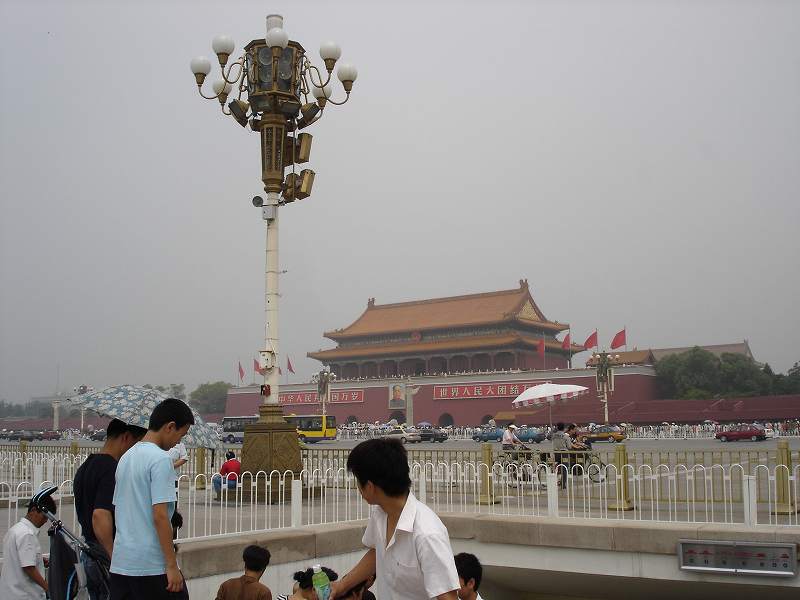 天安門広場、大気汚染で空気が非常に汚れていました。