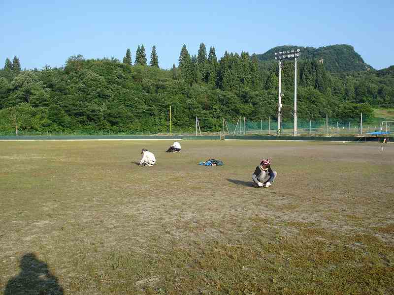 朝6時から1時間程、守門サンスポーツランド野球場の草取りを行いました。