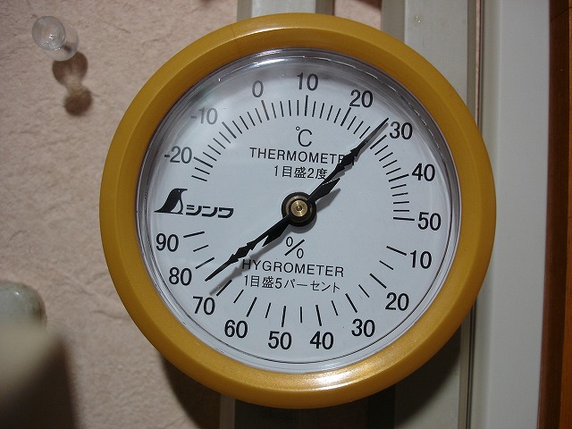 お昼、家の湿度計は75%、気温は27℃、ジメジメしています。