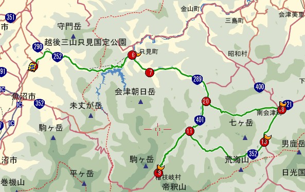 守門-六十里峠-只見町-南郷-桧枝岐村-舘岩-田島-南郷-只見町-六十里峠-守門