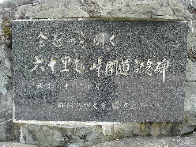 「会越の窓開く」 六十里峠の記念碑、昭和48年に開通、