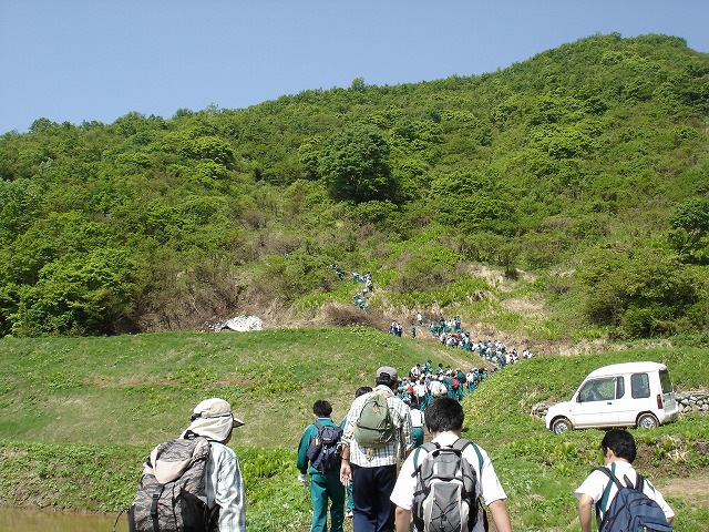 足立区立伊興中学校様1年生、魚沼自然教室2日目は鳥屋ケ峰(とやがみね)登山です。