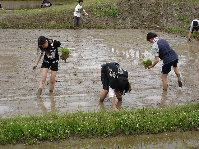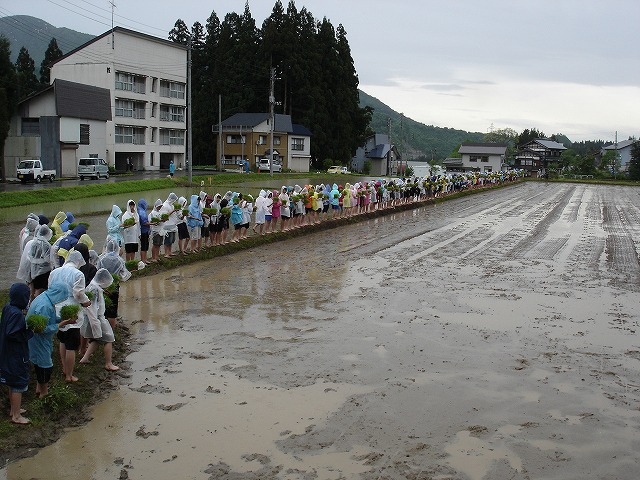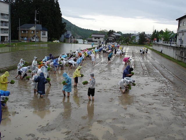 お昼前に魚沼市の竜光地区に入り昼食、田植え体験をし、