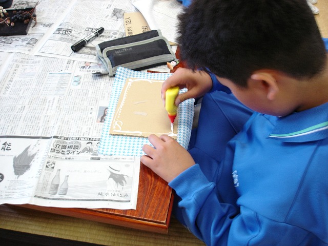 小西屋では文化体験と言う事で、エコフォトフレーム作りに挑戦しました。