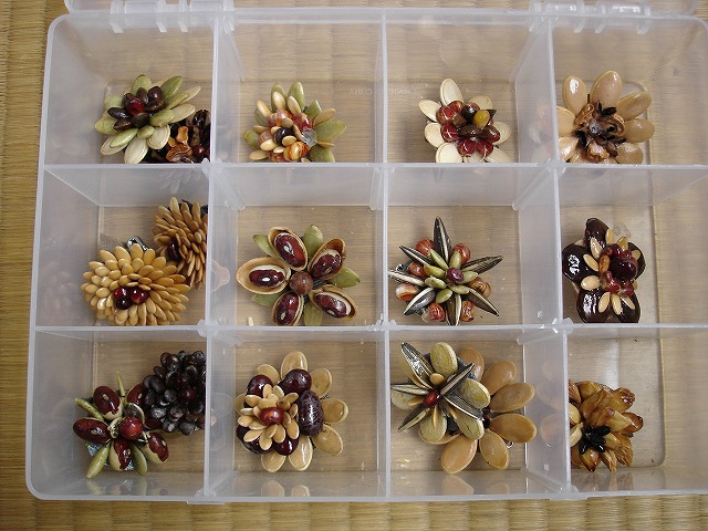 加賀屋さんの女将による、木の実を使ったブローチ作りです。