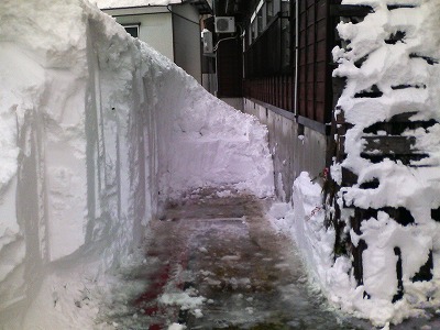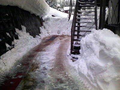 裏の非常階段、ドカ雪で手が回らずやっと除雪が終わりました。