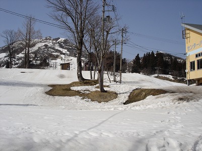 センターハウス脇のちびっ子ゲレンデも地肌が出ています。