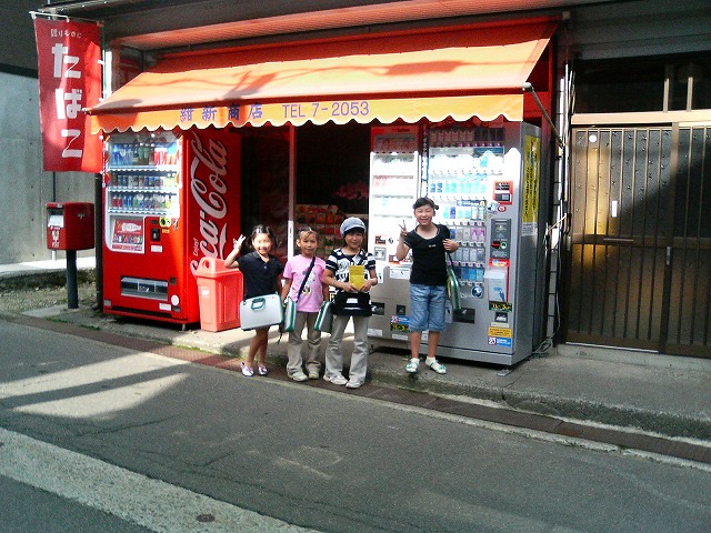 いつも遊んでもらっている近所の遠藤姉妹で、これから習字教室に向かうところです。