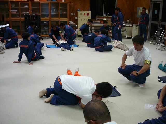 夜7:00からは10:00まで入広瀬生活改善センターで消防第4方面隊の普通救命講習会に参加、心臓マッサージやAEDの使用方法について学び、大変勉強になりました。