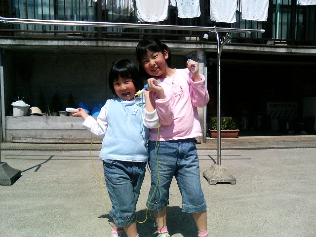 民宿は夜に宴会があり、娘達は近所のお友達と弁当を持って、上のふわふわ公園に超ミニ遠足に行きました。