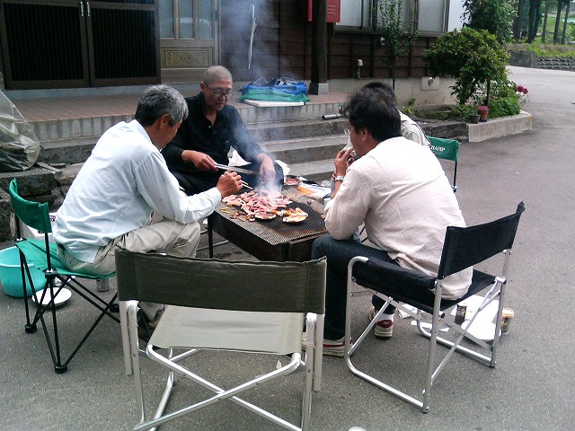 夕方からは近所の先輩方(お寺さん・畳屋さん・山清さん・クリーニングさん)にお誘い頂きバーベキュー5:00から10:00まで飲んでました。途中までおいしい焼肉とやきそばを頂き、腹いっぱいになったところで、途中からはキャンドルファイヤーとなりました。