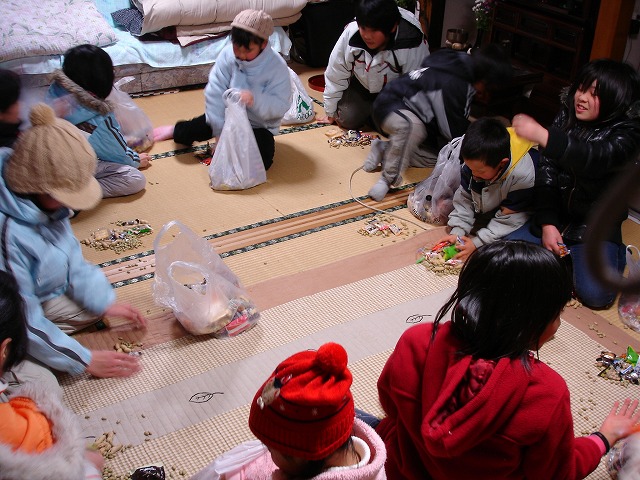 うちの娘も仲間入れてもらい15名ほどで、西村の豆まきをして下さる家に10軒程、6:30からまわって来ました。