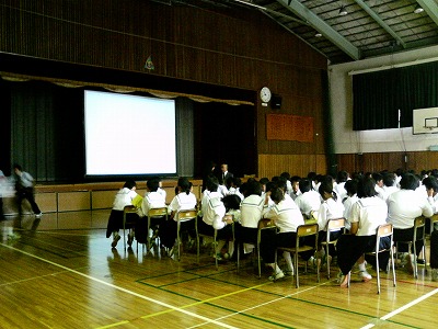 4:30起床して、5:30に守門出発、車で観光関係者5名で東京のK中学校に行ってきました。今回の目的は来週K中学校さんが体験教室で魚沼市にお越しになるので、地元のネイチャーガイドさんから写真・スライドを使って事前学習で行ってきました。