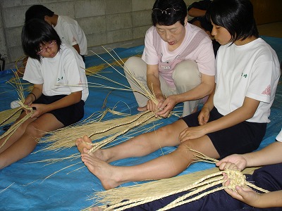 小西屋の女将はわら細工の講師となり、6人の生徒さんにテンポ良く教えていました。みんな終わりには草履を上手作っていました。