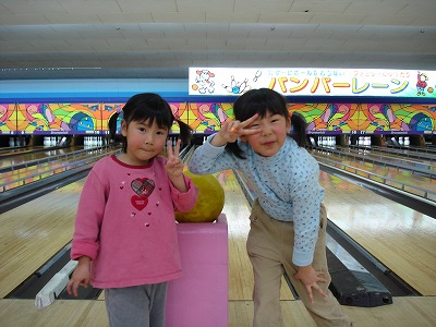 お母さんのショッピングの待ち時間に娘たちとボーリングをした写真です。