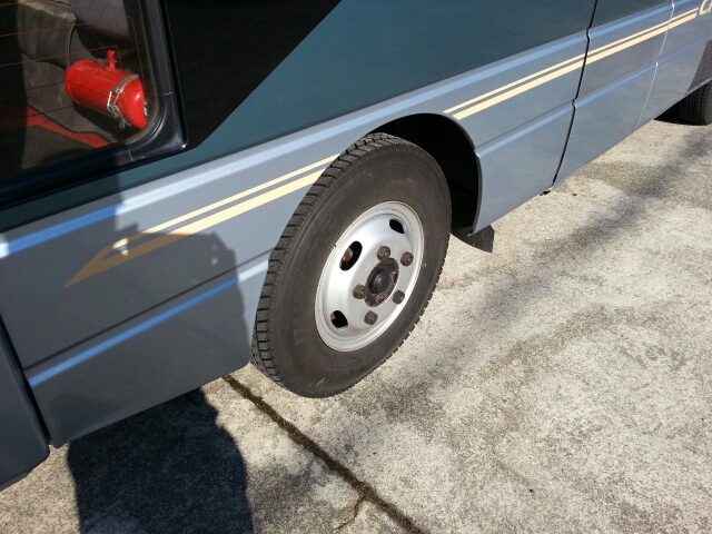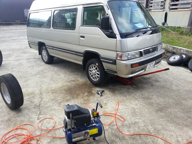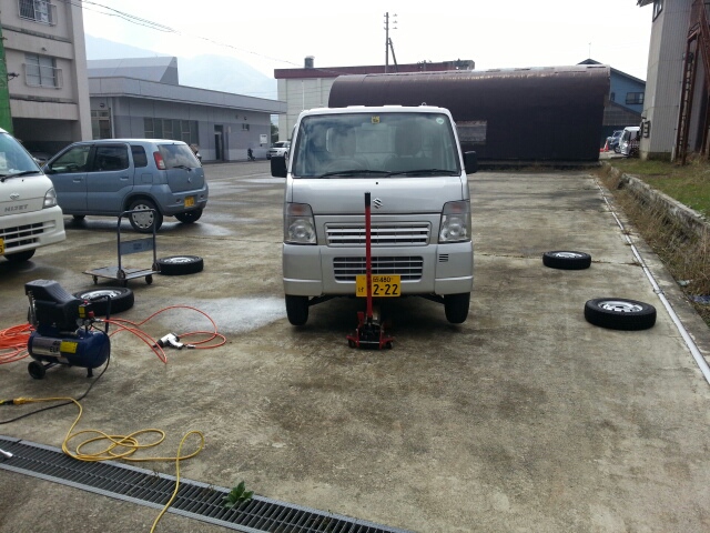 マイクロバスを入れて5台のタイヤ交換が終了です。