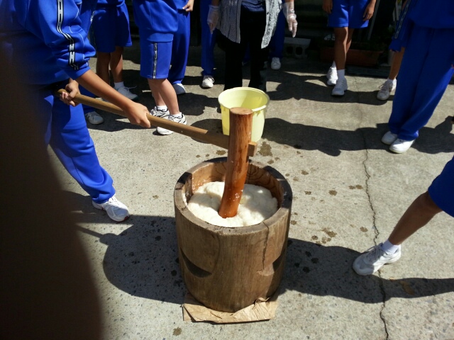 今日の夕食は各宿舎でもちつき体験、