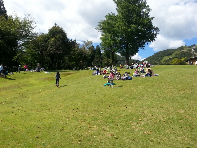 芝生の上で昼食(お弁当)。