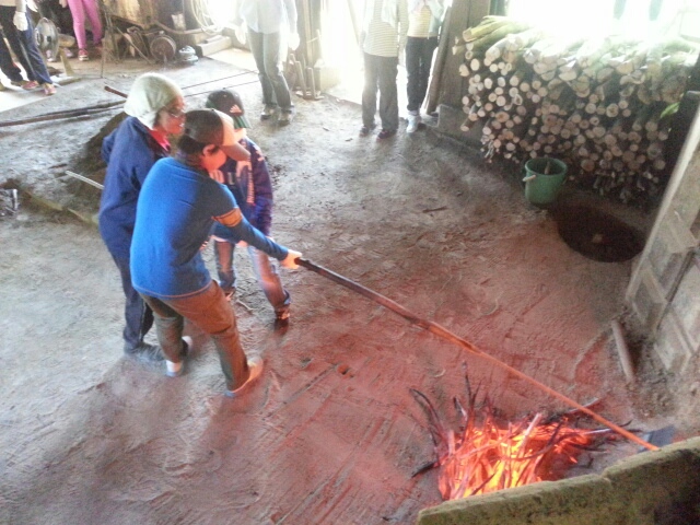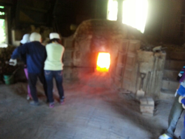 3グループに分かれて、炭出し体験、窯の温度は1000℃。