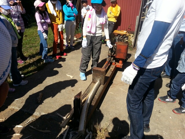昔の足踏み機械で実際に脱穀しました。